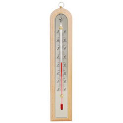 Vnútorný a vonkajší teplomer s dreveným podkladom, meria teplotu v rozsahu od 50°C do -40°C