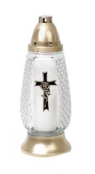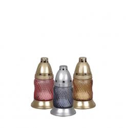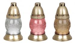 Grave lantern, with rose, mix of colors blue/transparent glass 28 h, 80 g, height 25 cm, for the gra