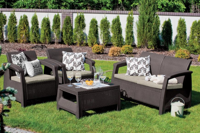 The elegant terrace set Allibert CORFU in a unique color combination of brown / oat is the ideal solution for your outdoor space – garden, terrace, or balcony. The combination of modern rattan design and pleasant color tones creates a stylish and comfortable place for relaxation, family moments, or gatherings with friends.