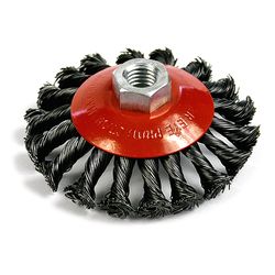 The circular, cup-shaped, crimped brush Strend Pro should be part of the equipment of professional craftsmen as well as DIY enthusiasts. The disc diameter is 100 mm with an M14 mounting type. The wire is made of steel with a thickness of 0.3 mm. The disc type is crimped. The maximum allowed speed is 12,000 rpm. It is used for removing corrosion, paint, and for cleaning surfaces.