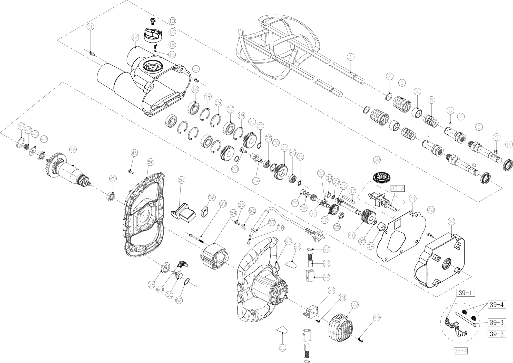 It is used for mixing building, chemical, and heavy materials, and is also suitable for rapidly and thoroughly mixing difficult-to-mix materials, such as high-density mortar, dried building materials, and a mixture of two or more materials.
