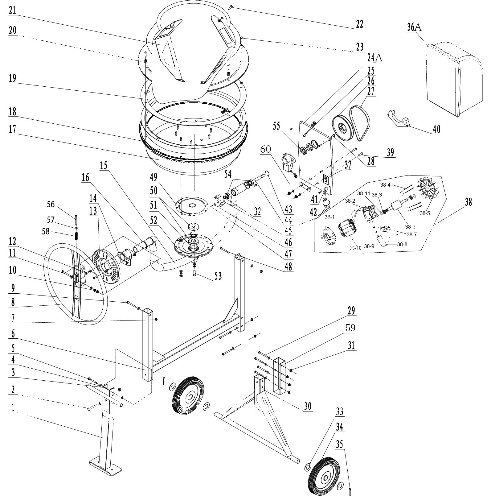 Wheels, as well as other components, can be easily and quickly installed on the frame of the mixer. Thanks to its iron construction, it is stable and the drum and exterior are easy to clean. All you have to do is press the switch to start mixing.