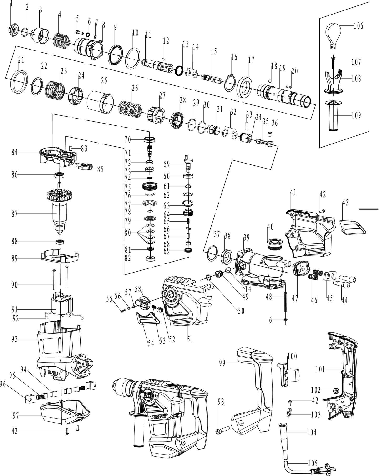 There are many types of demolition hammers on the market, but if you are looking for a drilling hammer that will be used for hammer drilling or screwing into various types of materials, the Worcraft RH18-38X hammer is for you. It is up to you whether it is drilling into concrete, brick, stone, wood, plastic or metal, the Worcaft hammer drill wont let you down.The drill package also includes a chisel, spitz and drill, thanks to which the hammer offers 3 functions - drilling, hammer drilling and chiselling.