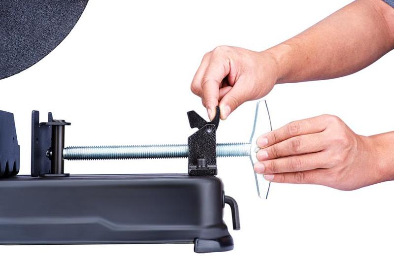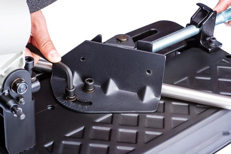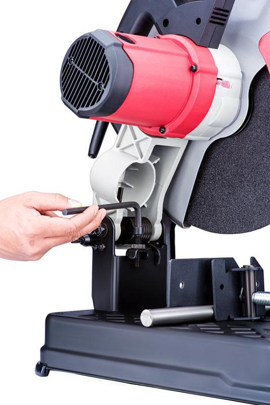 The cut-off machine is intended as a floor-mounted appliance for making straight longitudinal cuts at up to 45° using cutting discs