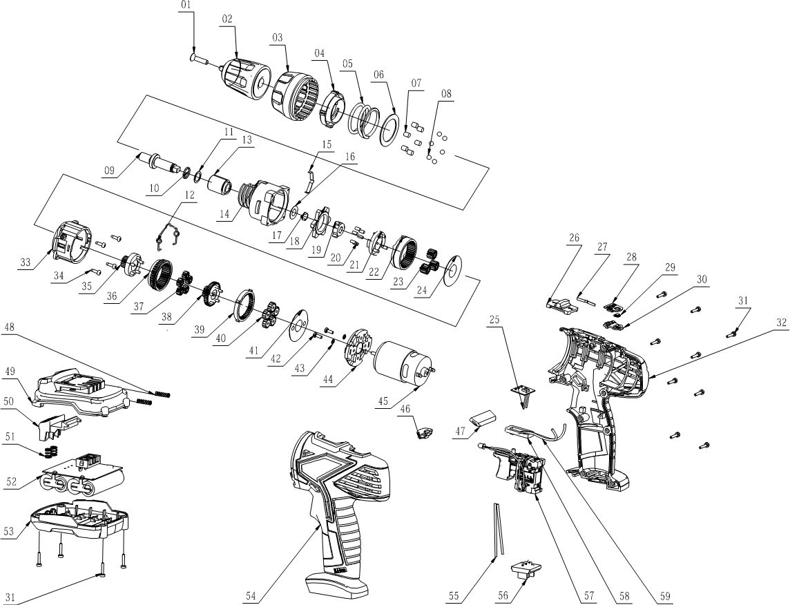Driver can be simply started by pressing a switch. After releasing the switch the brake function instantly stops the chuck. What is more, you can alternate between right and left rotation. You can also set the torque to one of 30 options, so you can deal with any screw. Safety during use is ensured by an ergonomic anti-slip handle. Driver is delivered in a suitcase along with two 1,5 Ah accumulators.