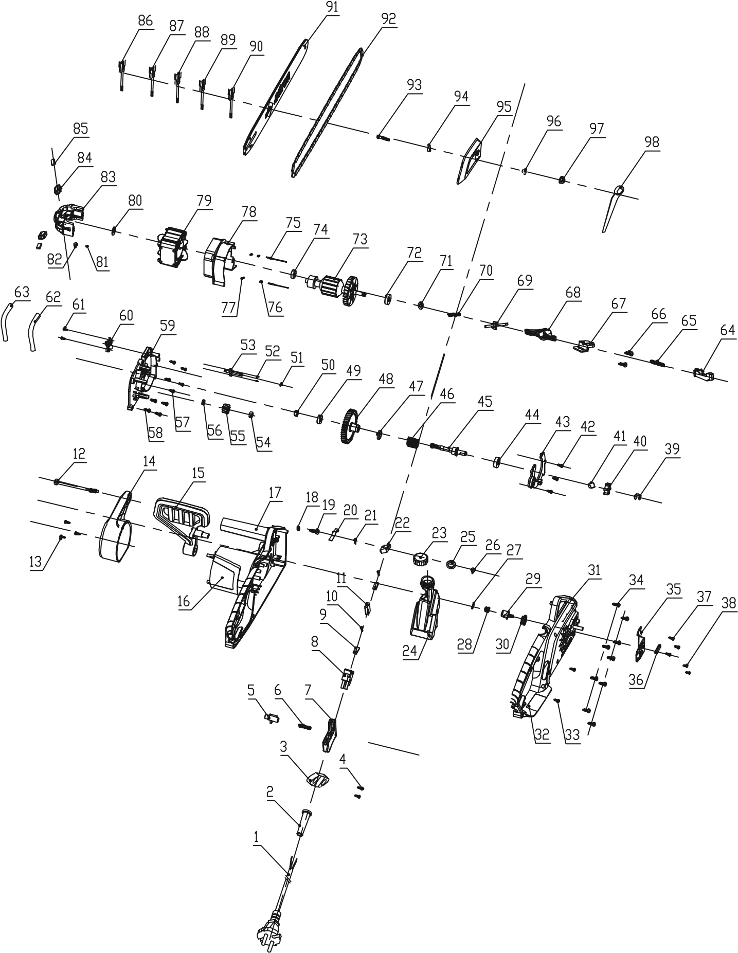 It is equipped with an oil tank with a volume of 150 ml. For your maximum protection, this saw also includes a mechanical chain brake which, in the event of a kickback, immediately stops the rotation of the chain by releasing the chain brake lever. You can also rely on a mechanical coasting brake to prevent injury from the coasting chain when the saw is switched off. You will also find a chain catcher here, which catches the whipping end of the chain in the event of a chain breakage during sawing, thus preventing hand injuries.