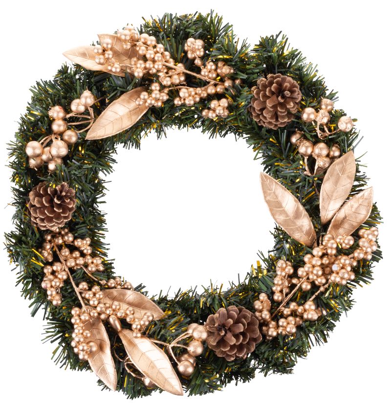 Veniec MagicHome by nemal chýbať vo výbave vášho interiéru počas vianočných sviatkov. Je to vkusný prírodný, bronzový veniec. Jeho priemer je 35 cm.