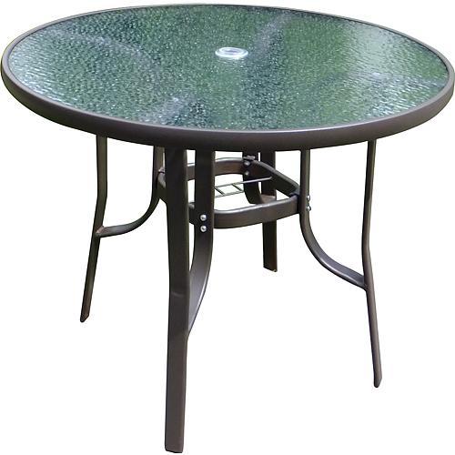 The garden table has a round shape. It is suitable for outdoor seating. The table looks powerful, thanks to the metal construction. The upper user surface is made of 5 mm thick tempered glass. The whole construction is black, the upper glass part is slightly transparent. The advantage of the massive construction is that the table is able to hold the parasol without any problems. The parasol can be placed in the middle of the table, where an opening is prepared for it. The diameter of the user area is 120 cm and the height of the table is 70 cm.