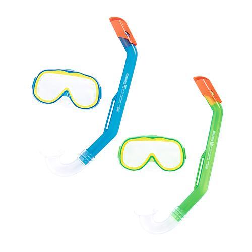 Hydro-Swim Lil Explora Snorkel Set by Bestway is the perfect accessory for your kid´s fun underwater experience in the pool or the ocean. Geared for swimmers aged 7 and up, the set comes with a mask and snorkel. The aviator style, polycarbonate lenses come with a double feathered edge skirt for a precision leak-resistant fit. Mask has a fully adjustable split head strap so it stays in place on your next underwater adventure. The dry-top snorkel technology prevents water filtration allowing your kids to dive beneath the surface in confidence. The soft, comfort-fit snorkel mouthpiece has an integrated purge valve for easy water cleaning. The adjustable snorkel strap retainer allows for a comfortable fit. Whether swimming or snorkeling, be sure to bring along the Hydro-Swim Lil Explora Snorkel Set by Bestway.