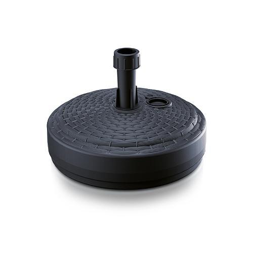 The parasol holder is made of anthracite solid plastic, which is resistant to atmospheric influences. Its weight is only 681 g, which makes it an ideal candidate and helper even on holidays, as you can pack it and move it wherever you need it. The lower base is round in shape and its great advantage is that it can be filled with water or sand, thus maintaining the necessary weight for the safe use of the parasol. The volume of this lower part is 10 l, which is sufficient to create the necessary weight on the lower part of the holder. Dimensions are 390 x 390 x 310 mm. The parasol itself is attached very easily by inserting and then tightening the thread on the rod located in the middle of the base. The maximum diameter of the umbrella bar that can be fastened is 10 to 26 mm.