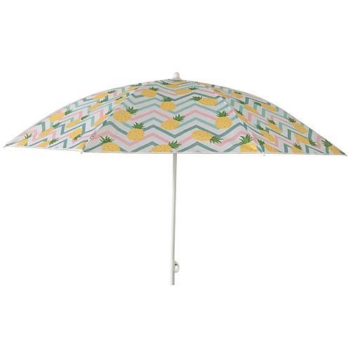 The parasol with pineapples and colorful ripples will create a holiday atmosphere anywhere. It is an ideal means of protection from the hot sun during summer days. The whole structure is made of solid steel. With a height of 218 cm and a diameter of 34/34 mm, the center bar provides sufficient strength and stability. The desired height can be adjusted by means of the center lock. The diameter of the ribs that support the upper part is 8x16 mm. The top cover is made of polyester, which is very resistant to sunlight and other external influences. The diameter of the top is 230 cm, providing a coverage of a larger area. The total weight is 1,1 kg, ensuring easy and easy handling and transfer. The parasol is without the possibility of tilting and flaps.