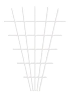 Support grid for climbing plants. V-shaped appearance. Color coordinated with wood and plants. It helps maintain the natural shape of plants and thus enhances their naturalness in the given environment. Use outdoors and indoors.