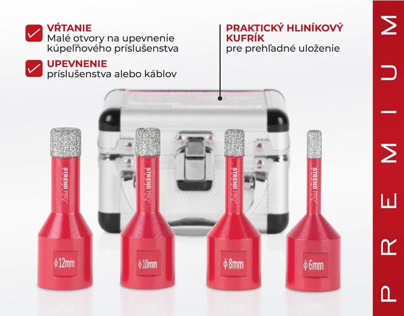 Hole Saw Set Strend Pro Premium DCB11S2, 6-8-10-12 mm, M14, diamond, core bits, professional