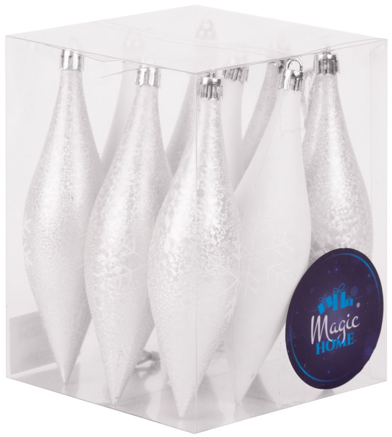 Ozdoba MagicHome slúži na slávnostné ozdobenie vianočného stromčeka. Súprava pozostáva zo 9 ks ozdôb s priemerom 14 cm. Farba ozdôb je bielo-strieborná. Sú vyrobené z plastu.