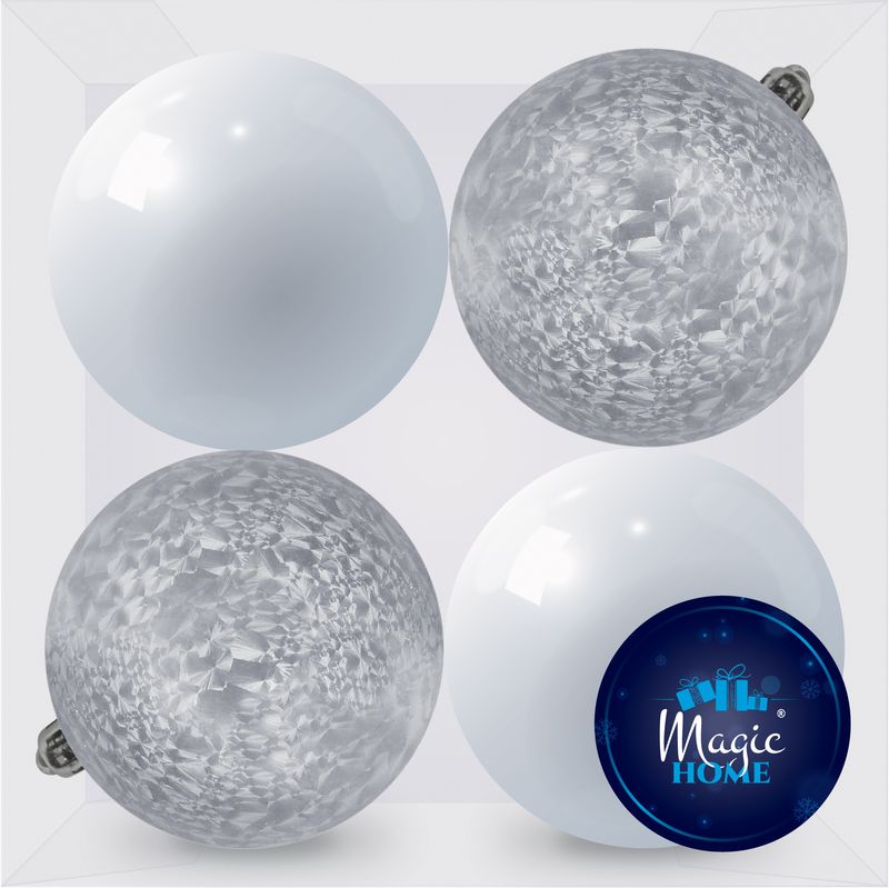 Ball MagicHome, 4 pcs, 10 cm, mix, silver, white, for Christmas tree