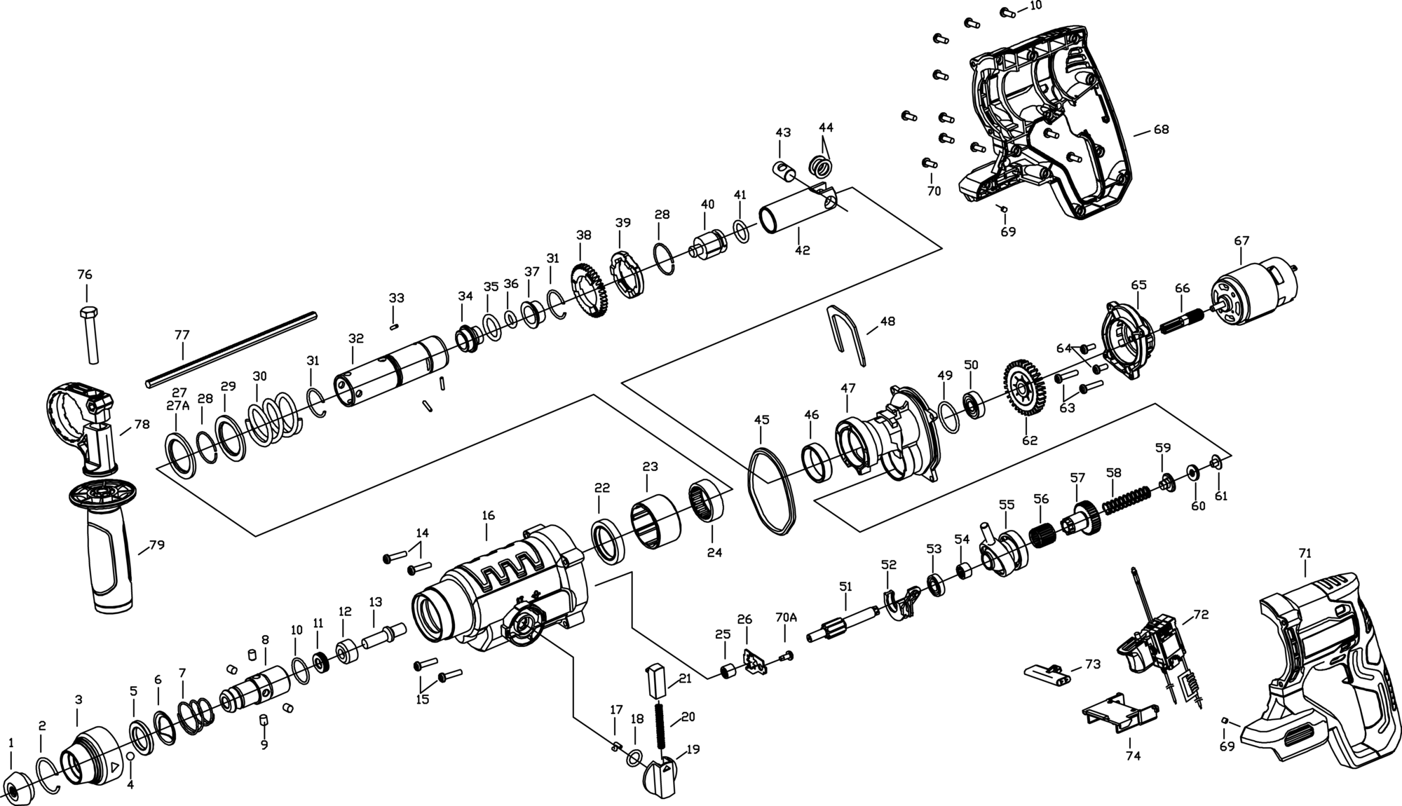 It is also possible to set the cutting angle, the drilling depth, the direction of rotation and also the speed/ hammer. The hammer drill must be used with an additional handle. The additional handle makes work easier, provides a better grip and can be rotated 360°. The operating mode selection switch allows you to set the hammer drill for different operating modes: metal and wood drilling mode/ concrete and stone hammer drilling mode/ chopping mode. The sliding clutch stops the spindle if the accessory jams and the hammer drill is overloaded.The battery and charger are not included in the package!