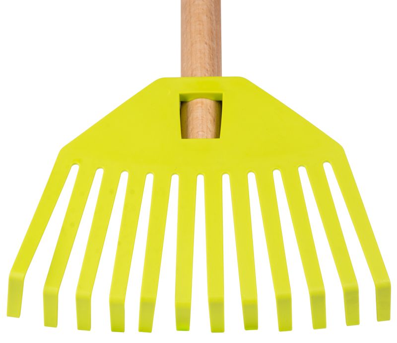 Rake GECO 23352, 195x14x780, children's, plastic, green, wooden handle