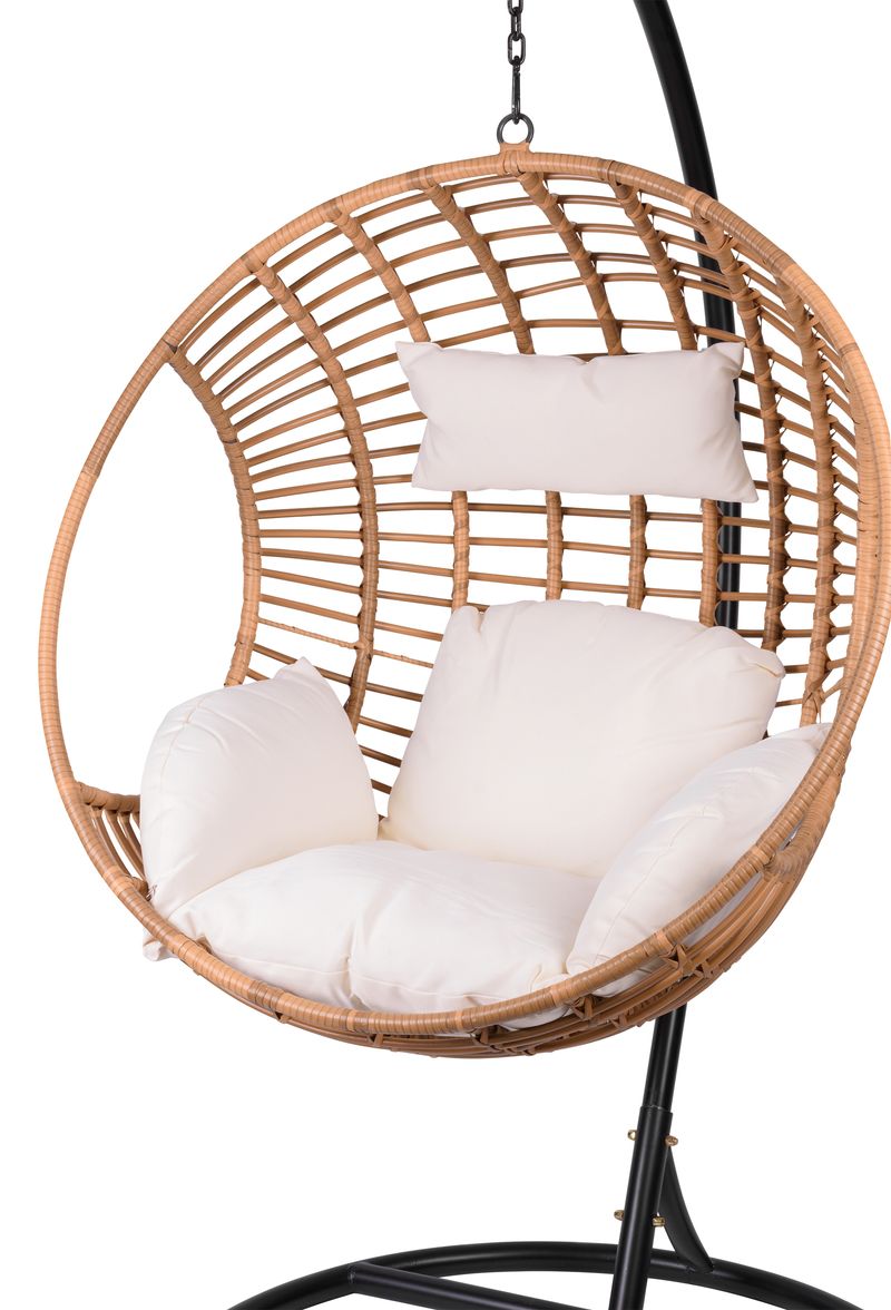- Total height: 200 cm - Dimensions of the rocking chair: 120 x 90 x 70 cm - Load capacity: 150 kg - Construction: - Color: gray - Material: metal, polyrattan - Pillow + pillows: - Color: latte - Material: cotton