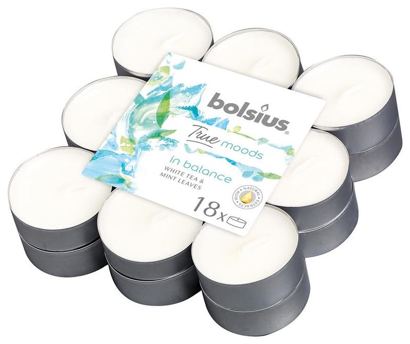 Candles Bolsius Tealight True Moods, in balance (white tea and mint leaves), bal. 18 pcs
