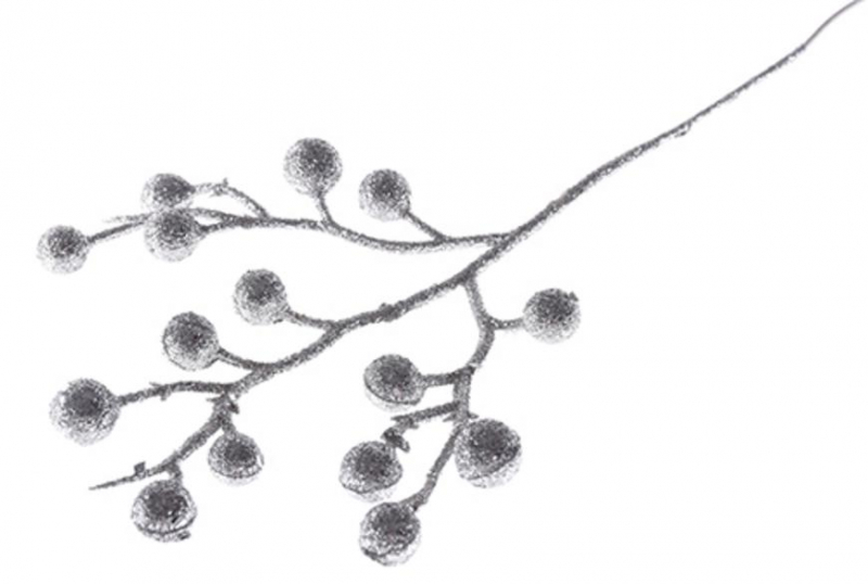 Decorative branch GliBerries. silver, 28cm, 6 pcs