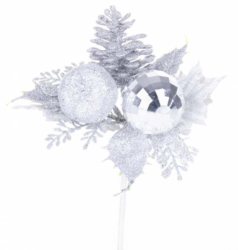 Decorative branch MagicHome Christmas, with apple, silver, 15 cm, pack 6 pcs