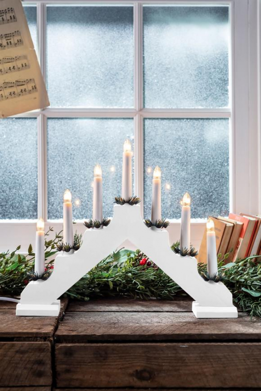 Candlestick MagicHome Christmas, 7 LED warm white, white, 2xAA, interior, 39x31 cm