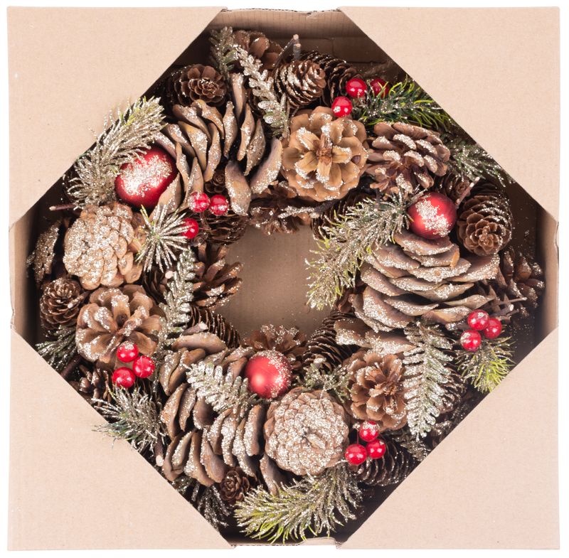 Závesný veniec MagicHome by nemal chýbať vo výbave vášho interiéru počas vianočných sviatkov. Je to vkusný veniec so šiškami a čečinou. Jeho rozm... full description