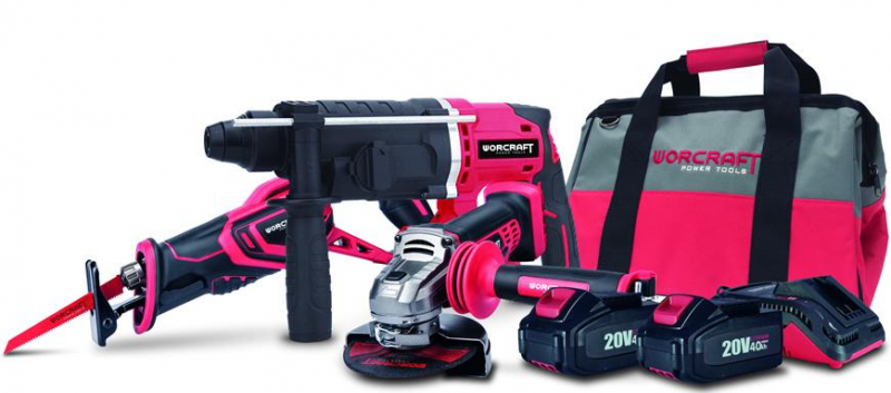 Set Worcraft WSET-08, S20Li hammer, tail saw, angle grinder, charger, 2x battery + bag