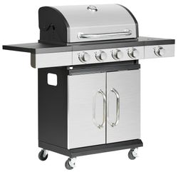 The Manresa 4-burner gas grill is ideal for quick meal preparation. It also includes a separate burner on the right side for easy outdoor cooking. On the left side, there is a small storage space where you can store grilling tongs, etc. The main grilling area is located under the top stainless steel lid. The cooking grate is made of enameled steel. An advantage of the grill is the built-in stainless steel temperature indicator, so you don't have to constantly check the food. Below the grilling area, there is also a storage space where you can place a gas bottle. A standard gas bottle with a fill weight of up to 11 kg is used for the grill's operation. In terms of cleaning, you will appreciate that grease is very easily removed after grilling. The grill dimensions are 131 x 57 x 110 cm. If necessary, the base is equipped with 4 wheels, which will make it easier to move.