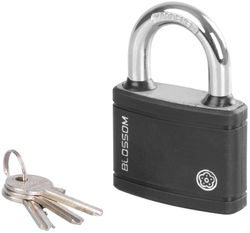 The FAB lock is designed for locking gates, doors, and cabinets. It is a padlock with a width of 38 mm. It also includes 3 replacement keys. It is equipped with a double-sided hardened shackle.