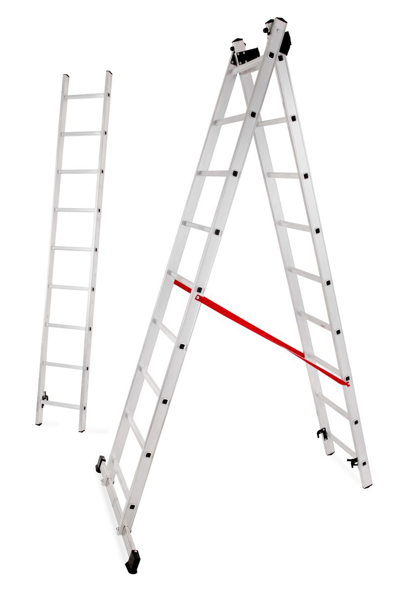 Dvojitý hliníkový rebrík Strend Pro s 9 priečkami sa vyznačuje pevnou a stabilnou konštrukciou, ktorá zaručuje bezpečnú prácu vo výške. Priečky sú spojené krimpovacou metódou. Protišmykové pätky zabraňujú skĺznutiu rebríka. Vhodný na profesionálne použitie. Nosnosť je 150 kg. Vyrobené v EÚ.