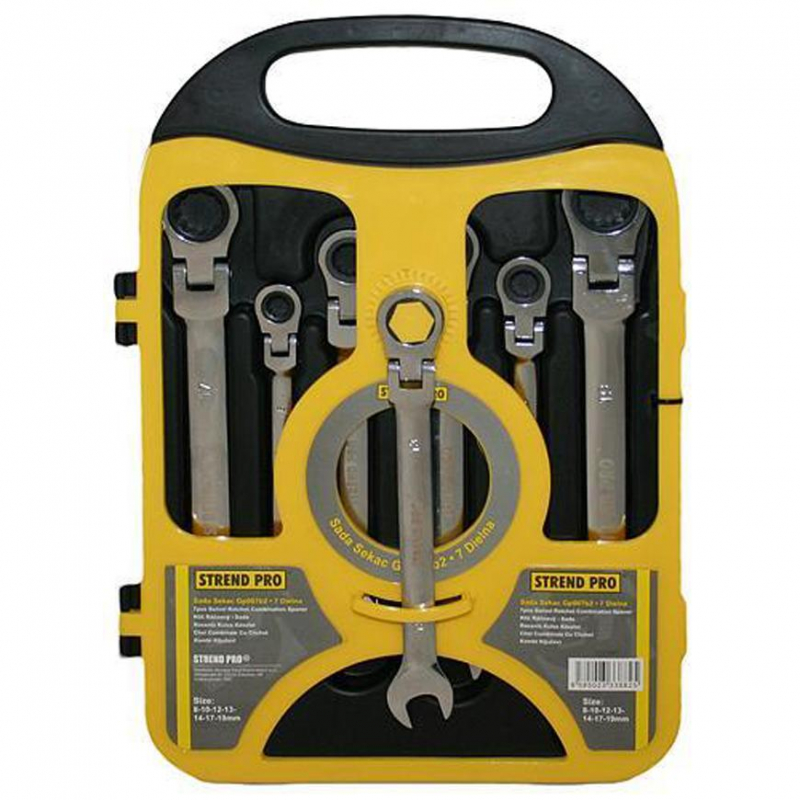2.TRIEDA Sada kľúčov Strend Pro CSS819, 07 dielna, očkoploché, račňové s kĺbom, 8-19 mm