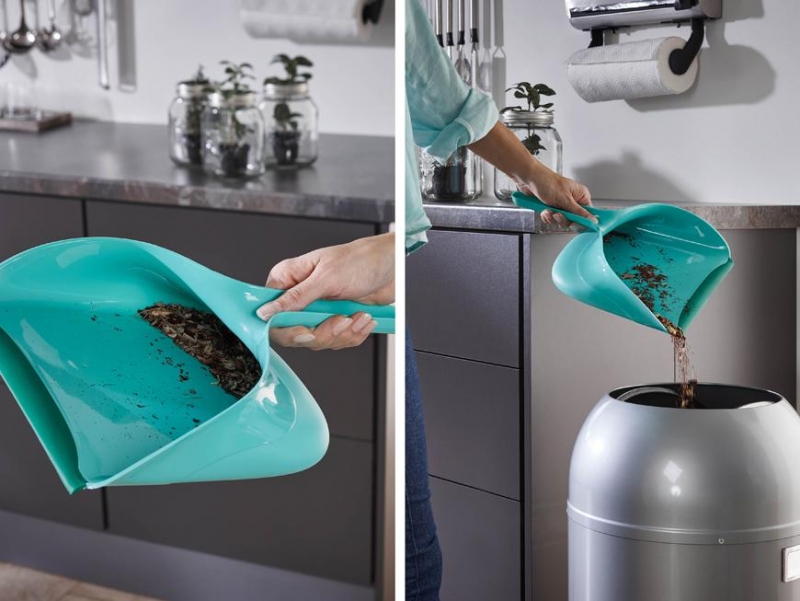 Zmetáčik s lopatkou. Rozmery: 26x30x9 cm. Farba:tyrkysová, materiál:plast.