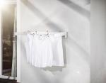 Praktický skladací nástenný sušiak na bielizeň, šetrí miesto, vhodný nielen do kúpeľne, samostatný chrómovaný vešiak na osušky, šírka tyčí 100 cm, 8,1 m sušiacej plochy = 1 práčka bielizne, záruka 3 roky.