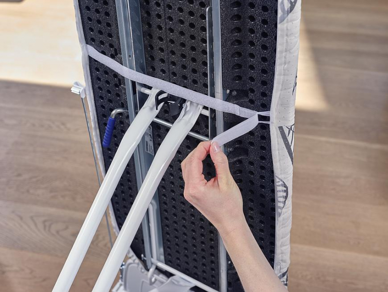 Poťah pre žehlenie s parnými generátormi alebo parnými žehličkami, vďaka špeciálnej perforácii zaisťuje extra prepúšťanie pary, 4mm molitanové polstrovanie, vhodné pre žehliace dosky Air Steam a Air Board Express, sťahovanie šnúrkou s klipsom, pružný poťah pre ľahšiu aplikáciu na žehliacu dosku rozmery až 1 x 40 cm.