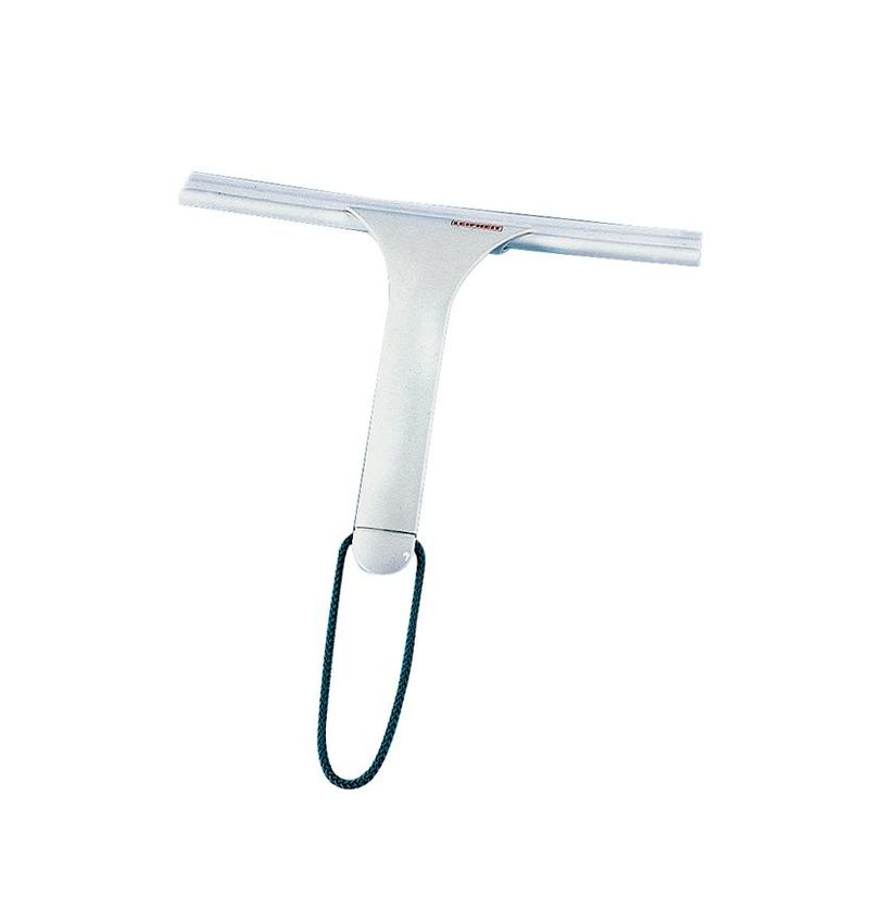 Ideálna stierka pre sprchové kúty zo skla, akrylu alebo dlaždíc, stieracia časť je z bielej gumy, teda nerobí škvrny, vrátane remienka na zavesenie, šírka 24 cm, záruka 3 roky.