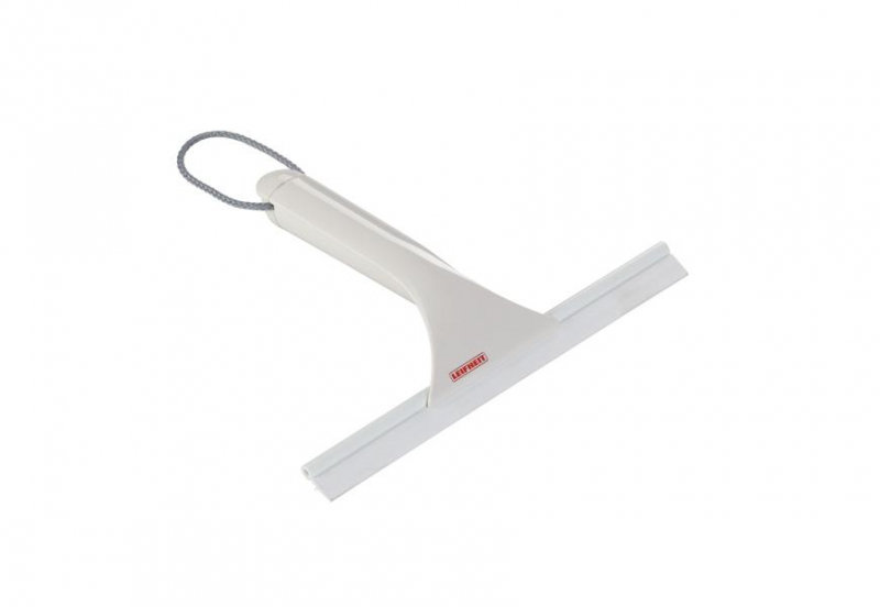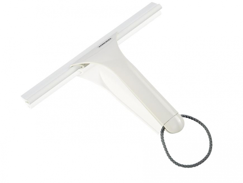 Ideálna stierka pre sprchové kúty zo skla, akrylu alebo dlaždíc, stieracia časť je z bielej gumy, teda nerobí škvrny, vrátane remienka na zavesenie, šírka 24 cm, záruka 3 roky.