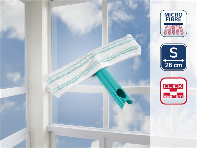 Mop na okná čistí okná, rámy a rohy, vysoký stupeň savosti vody a nečistôt, náhrada z mikrovlákna umiestnená po celej ploche mopu, šírka stieracej plochy 26 cm, kompatibilná s produktmi rady CLICK.
