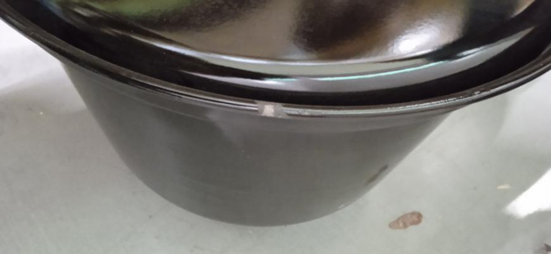 DEFECT DESCRIPTION: Decayed enamel from the cauldron and basin + damaged packaging.