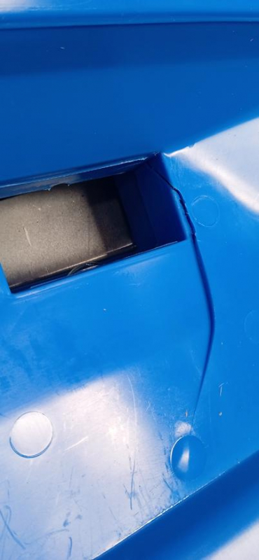 DEFECT DESCRIPTION: Cracked container from the inside and at the top.