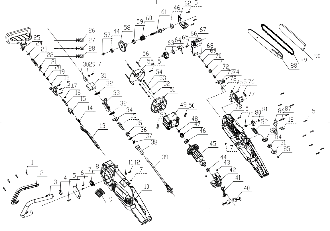 For your maximum protection, this saw also includes a mechanical chain brake, which immediately stops the chain rotation in case of kickback by releasing the chain brake lever.