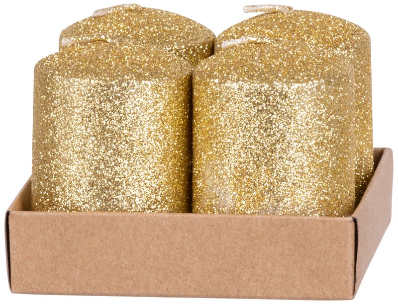 Sviečka MagicHome Vianoce, 4x6 cm, valcová, bal. 4 ks, zlatá, s glitrami, adventná
