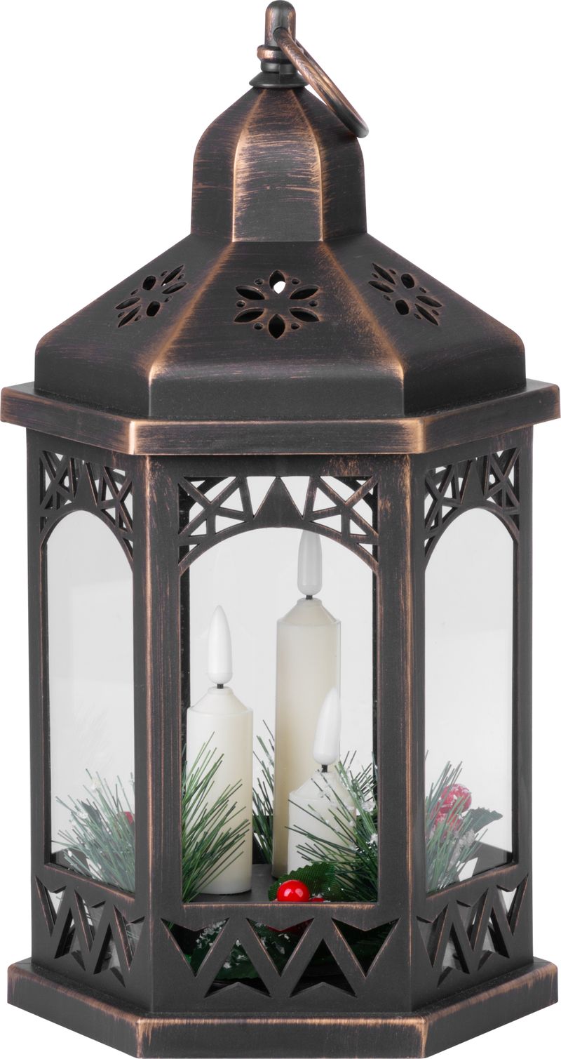 Lampáš MagicHome Vianoce Morocco, 3x LED sviečky, čierny, 3xAAA, plast, časovač, 18x15x32 cm