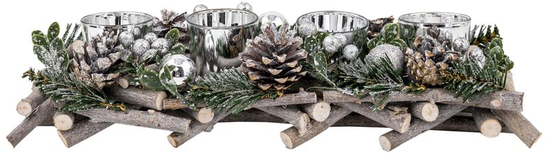 Ikebana MagicHome Vianoce, drevená, strieborná, adventná, 40x14x8 cm