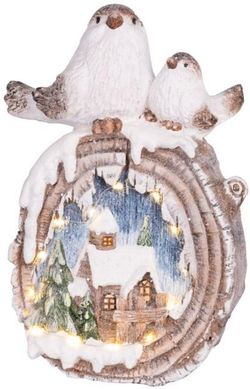 Decoration MagicHome Christmas, Birds with Houses, LED, ceramic, 3xAAA, 33.3x16.5x47 cm
