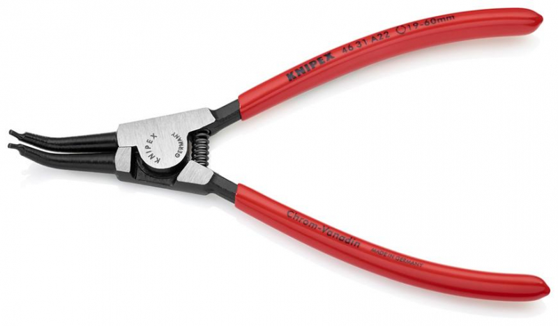 46 31 A22 Kliešte na poistné krúžkyPevný štýl, kované. Protišmykové, pevné špicky. podla DIN 5254 A a DIN 5254 B, ale 45° ohyb. : Ř 19 – 60 mm : ... full description