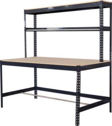Pracovný stôl do dielne Racks je vyrobený z materiálov odolných voči mechanickým poškodeniam. Obsahuje praktickú poličku, na ktorú si môžete naukladať náradie a súčiastky. Maximálna nosnosť pracovnej dosky pri rovnomernom rozložení je 350 kg. Jednoduchá montáž. Rozmery : 183x90x183 cm.
