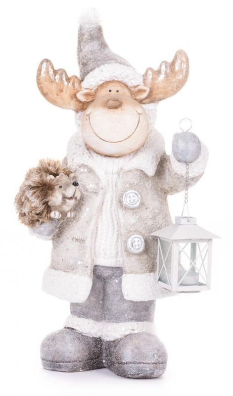 2.TRIEDA Dekorácia MagicHome Vianoce, Sobík s lampášom, keramika, 24,50x18,50x49 cm