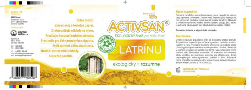 Prípravok Activsan Latrína 500g obsahuje iba voľne sa v prírode vyskytujúce baktérie a enzýmy, ktoré naštartujú biodegradačné proces (prestanú sa vytvárať usadeniny a kaly), čím sa optimalizuje bakteriálna účinnosť vo Vašej latríne a suchých WC. Výsledkom je úplné rozloženie suchých či tuhých exkrementov hromadiacich sa aj niekoľko rokov a zastavenie ich opätovného usadzovania. Ďalším preukázateľným faktorom je výrazné zníženie až odstránenie vznikajúceho zápachu.