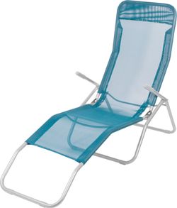 The beige garden lounger is designed for outdoor seating or lounging. The frame is made of metal, the lounging surface is covered with durable mesh. The lounger can be adjusted to two positions, for sitting or lying. The lounger can be folded, thus taking up little space and is practical for transport and storage. The lounger is not intended for commercial purposes. Dimensions of the unfolded lounger are 140 x 60 x 95 cm.